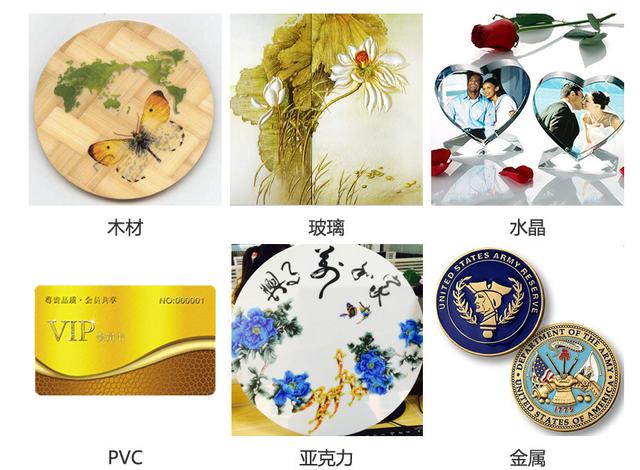 受物体原料的影响 能够用丰厚的颜色在原资料,如:金属、塑料、石材、瓷砖、木材、金属、玻璃、水晶、瓷砖、铜版纸) 制品和半制品等软、硬质物体外表上进行图画的真彩图文打印。